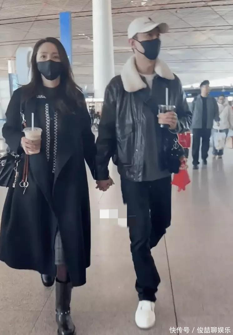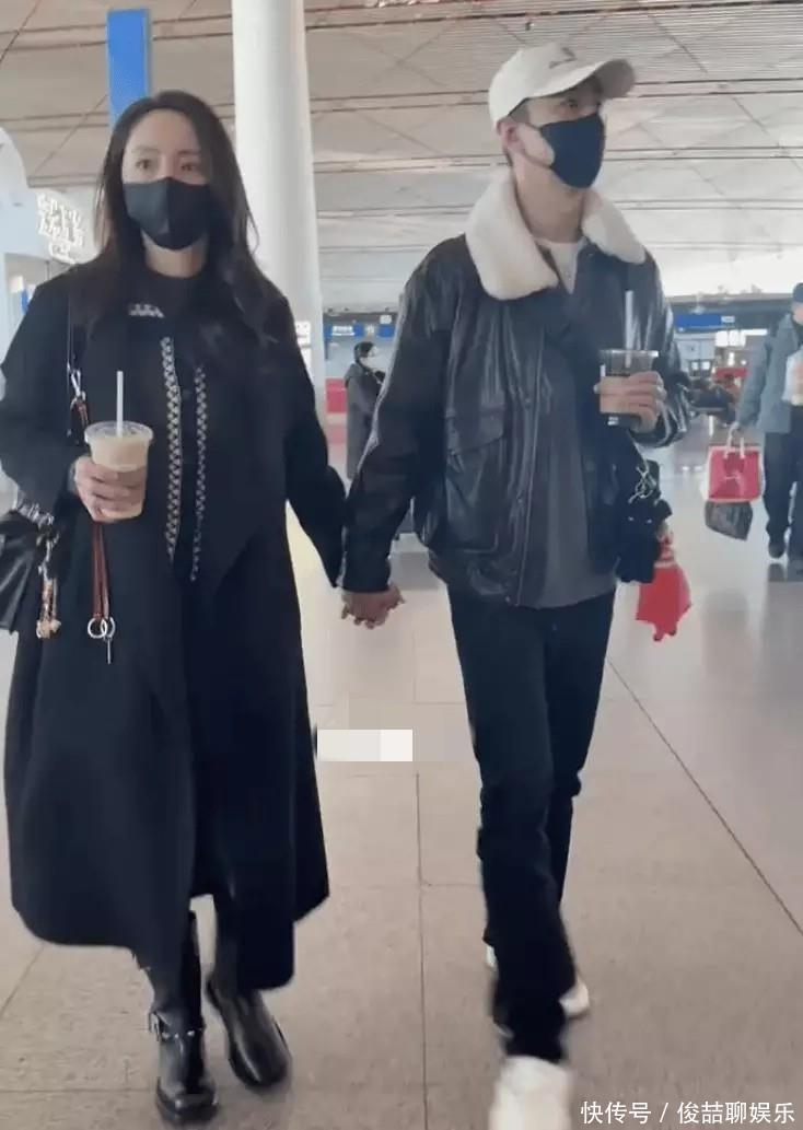 张维伊呀,是身着黑色皮夹克的模样,头上戴着棒球帽呢,那帅气的程度真是十足呀。整个过程中呢,他是手指紧紧相扣的状态,两人一边聊着天,一边欢笑着呢,就算手里都端着咖啡,可就是不愿意松开彼此的那双手呀。在机场当中,董璇和张维伊之间的互动呈现出很自然随意且极为亲密的状态,就好似那些正处于热恋时期的情侣一般。他俩各自右手是手持着一杯咖啡的,然而左手却是在整个过程当中一直十指紧紧相扣完全不愿意松开 。在那段时间当中,董璇带着俏皮的姿态把头靠在了张维伊的肩头之上,脸上呈现出眉眼弯弯充满笑意的模样,而张维伊时不时地运用手去抚摸她的后背之处,那种关爱之情从言语之外都流露了出来。张维伊看起来好像不太习惯被好多人围着拍照,眼神有点躲闪,走路步子显得生硬,然而呢,他始终全程在董璇身子旁边 guarding,还主动去帮着提她的随身行李,照顾得细致周到。